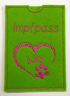 Impfpasshülle bestickt mit Pfotenherz in Filz